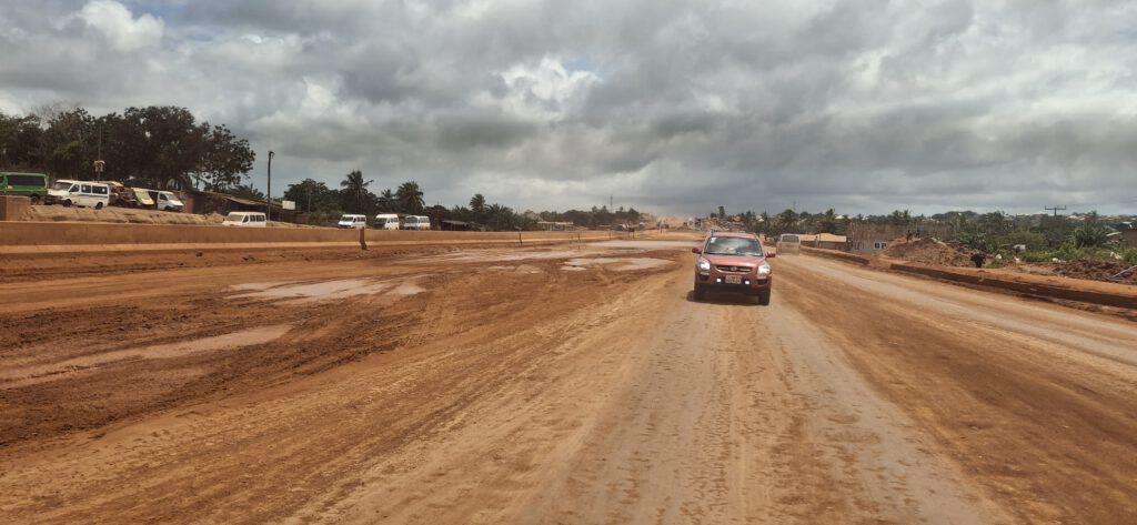 Die Strecke bei Buduburam ist immer noch „under construction“, sprich Baustelle.